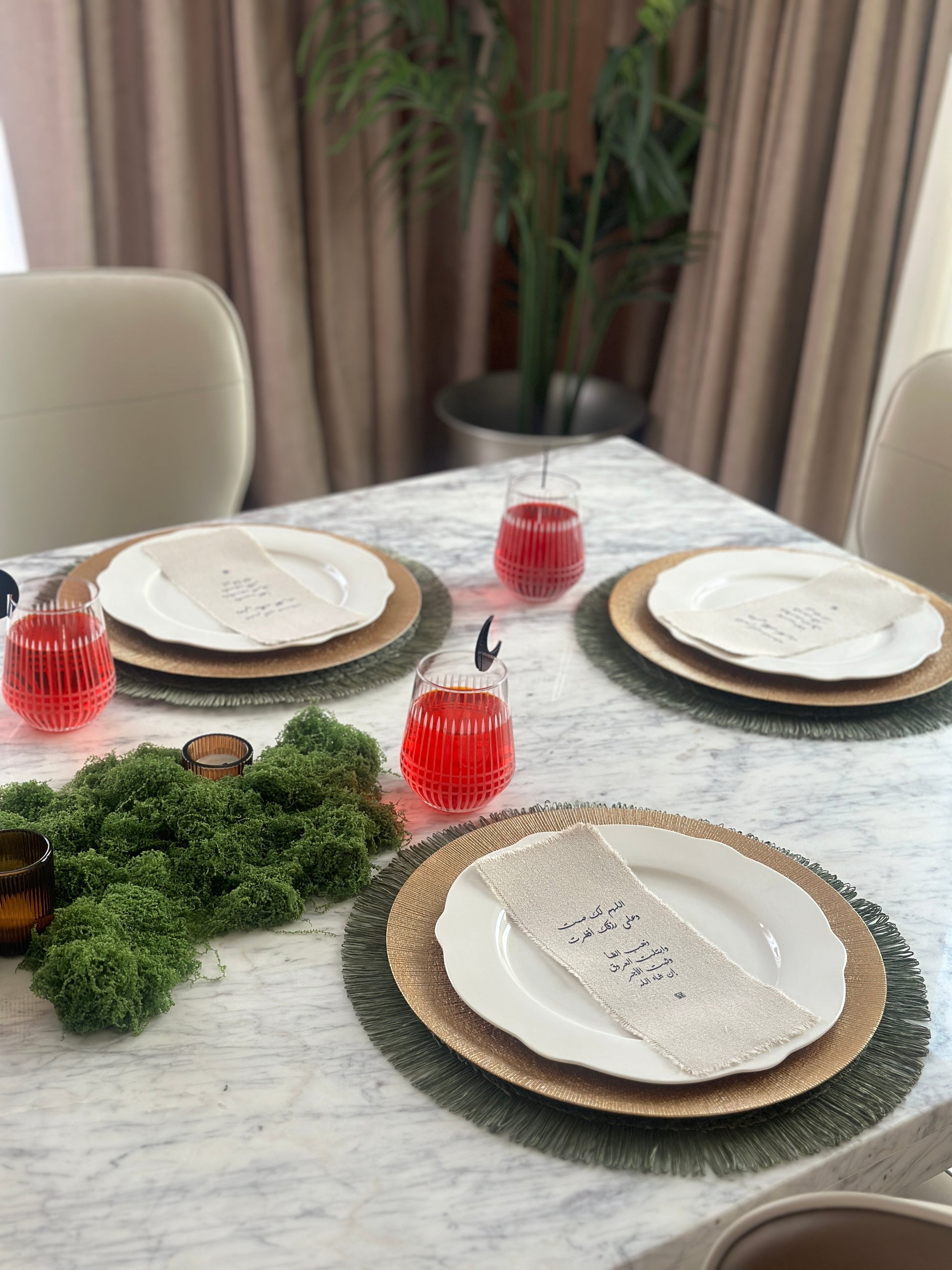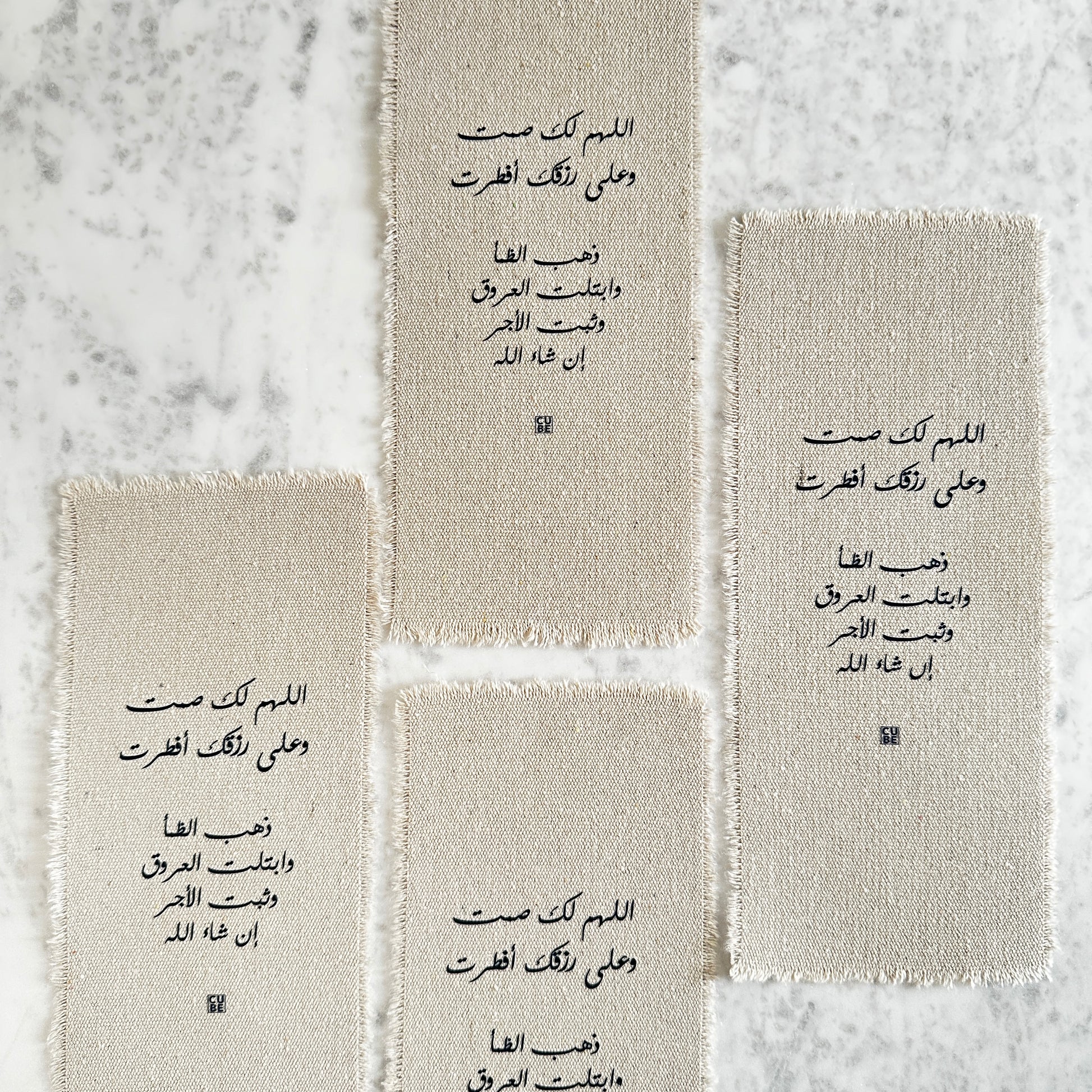 أضف لمسة جميله إلى مائدتك الرمضانية مع بطاقات الأطباق القماشية من كيوب مصممه بدعاء الإفطار الرمضاني. مصنوع من قماش عالي الجودة. تجمع هذه القطع بين البساطة والأناقة، وتذكّر ضيوفك بالجوهر الروحاني لرمضان. مثالية لإضافة لمسة خاصة على مائدة الإفطار وجعل تجمعاتك الرمضانية أكثر تميزًا