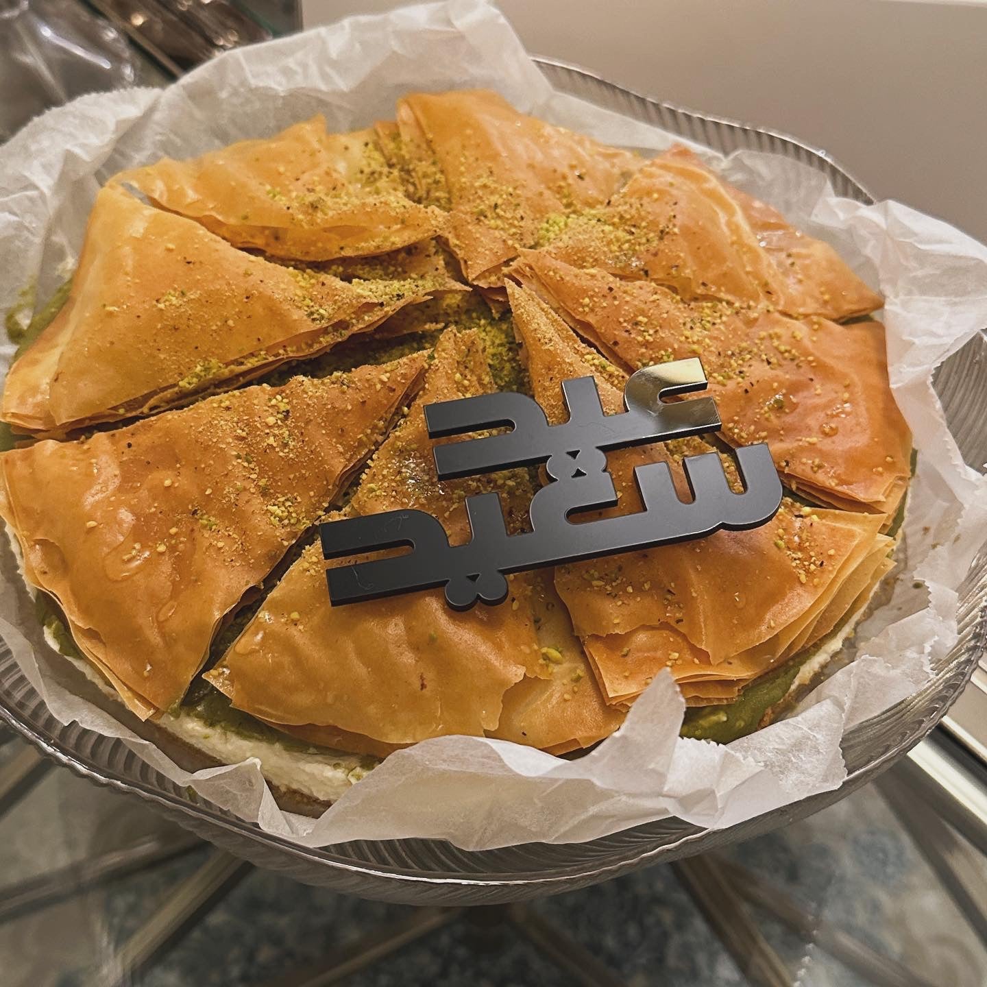 قطعة الأكريليك المزينة بعبارة عيد سعيد مثالية لتزيين الصحون، الأكواب، أو حتى ديكور المنزل. بسيطة، أنيقة، وجاهزة للإستخدام