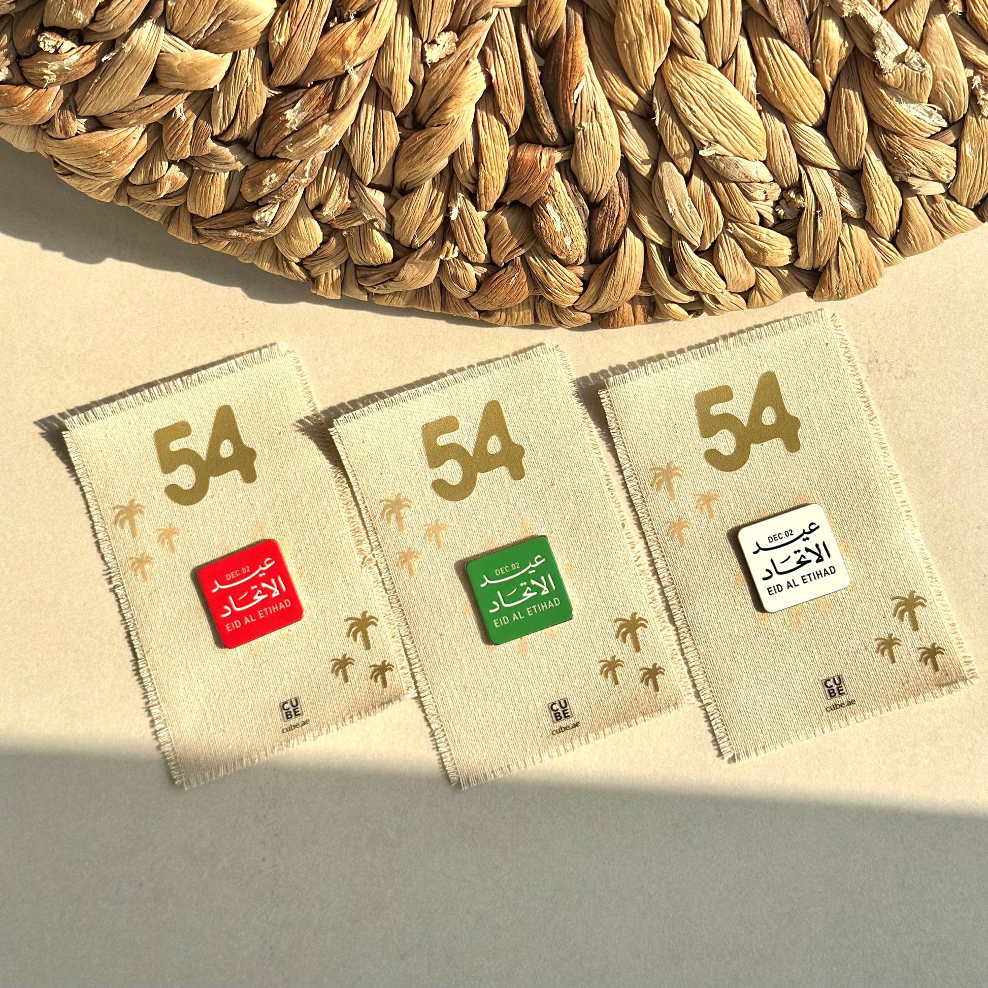 بطاقات قماشية مع بروش مغناطيسي بثيم عيد الاتحاد الـ 54