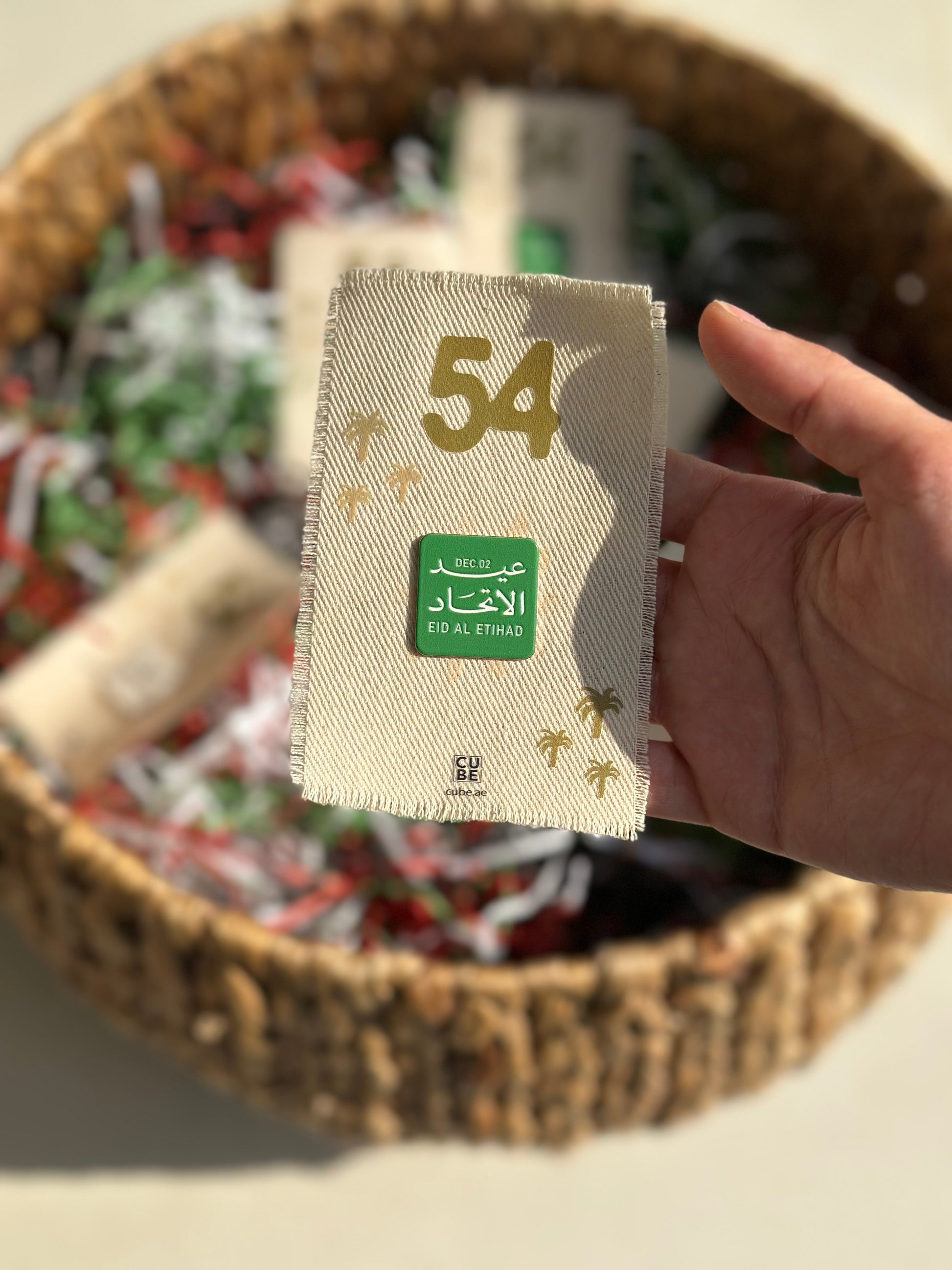 عيد الاتحاد - توزيعات بطاقات قماشية مع بروش